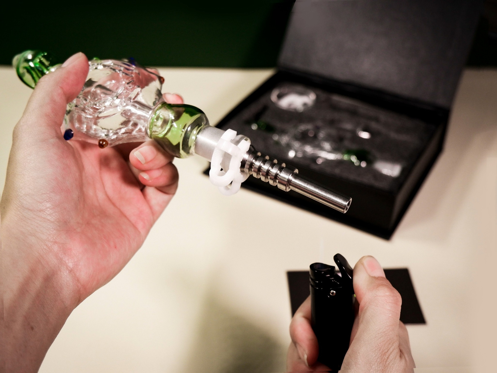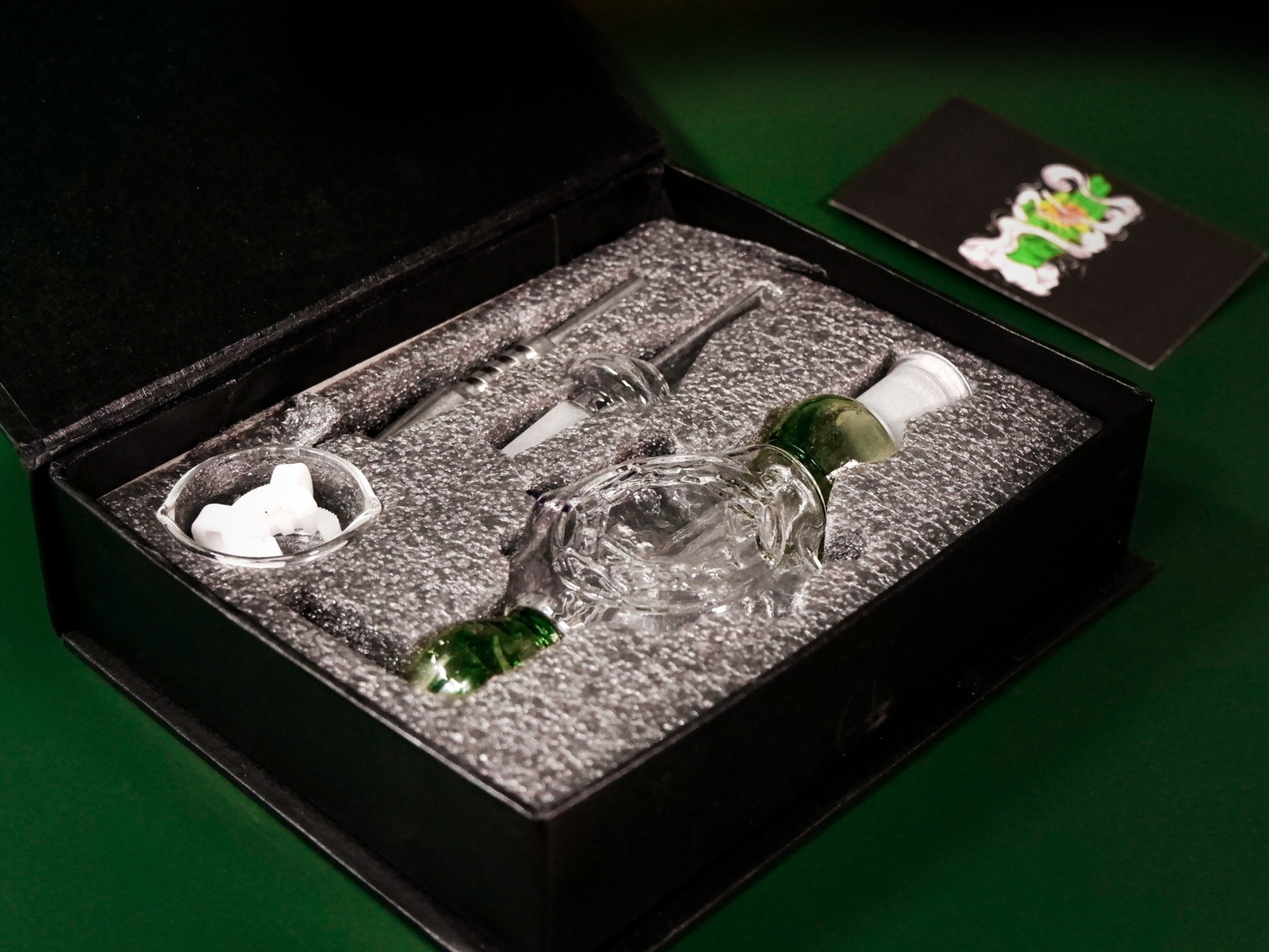 ชุดเครื่องดูดน้ำหวาน เป็นชุดอุปกรณ์เสริมสำหรับใช้กับวัสดุพลาสติก ดูดขี้ผึ้ง อุปกรณ์นี้ประกอบด้วยตัวกรองแก้ว ปลายตะปูไททาเนียม ปลายตะปูควอตซ์ แคลมป์ แผ่นดิสก์ และกล่อง ในการใช้อุปกรณ์เสริมนี้ คุณต้องประกอบอุปกรณ์เสริมก่อน จากนั้นวางวัสดุบนแผ่น ให้ความร้อนปลายตะปูไททาเนียมด้วยปืนลมร้อน แล้วสัมผัสวัสดุ คุณสามารถสูบควันที่กรองแล้วผ่านตัวกรองแก้วได้