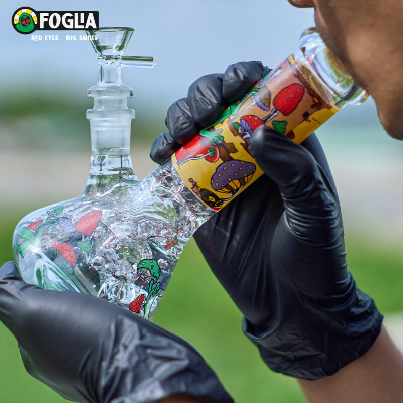 With its exclusive design and signature artwork of the chill frog surrounded by a magical mushroom forest, this bong has become a true Foglia icon — instantly recognizable even without the logo.